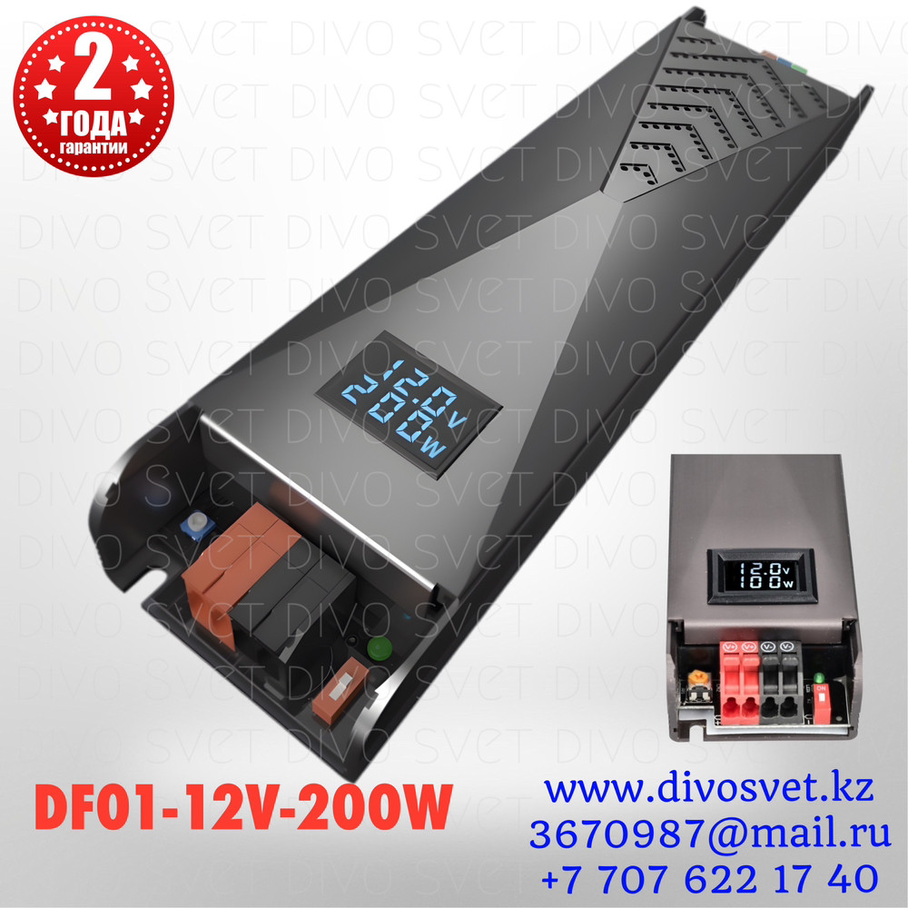 Блок питания DF01 12V 16,6A 200W с дисплеем мощности. Трансформатор 220В-12В, 200 Ватт. Power supply 12v